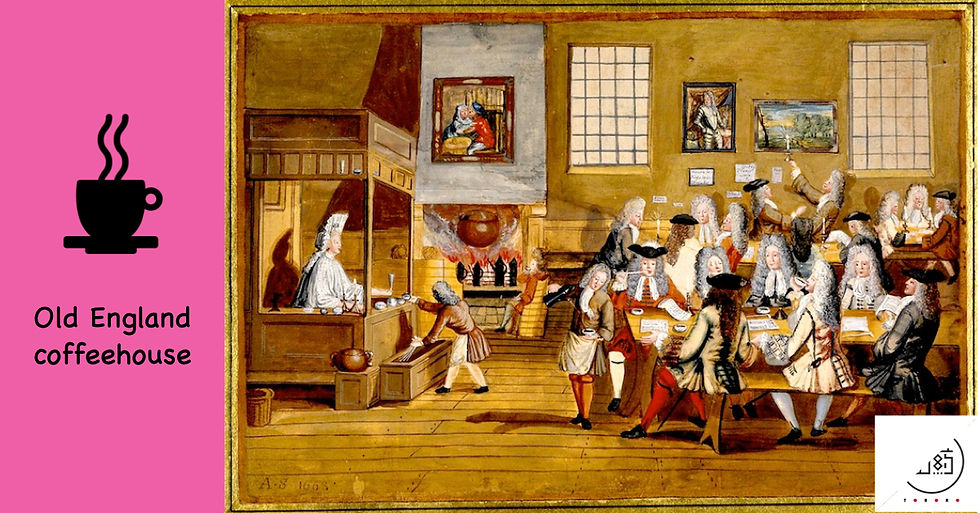咖啡嘅來源可以追溯到去十七世紀,本身由埃塞俄比亞起源,但其實喺歐洲發揚光大。1652年英國第一間咖啡屋coffeehouse於牛津誕生,由一名叫Pasqua Rosee嘅希臘人創立。跟著就有唔同嘅咖啡屋相繼「開張」。